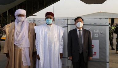 2021年3月21日,中国政府援助的安博官方网站中国生物新冠疫苗运抵尼日尔首都尼亚美迪奥里•哈马尼国际机场。尼日尔总统伊素福、总理拉菲尼等赴机场迎接。