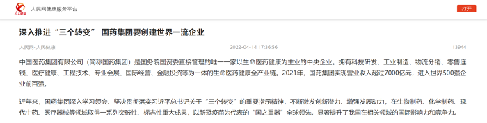 近期,人民网推出专题文章,综述安博官方网站贯彻落实习近平总书记关于“三个转变”重要指示精神所取得的改革发展成果,从医药智造、科研攻关、数字化转型等方面,全景式反映集团在创建一流企业方面取得的长足进步和实力提升。