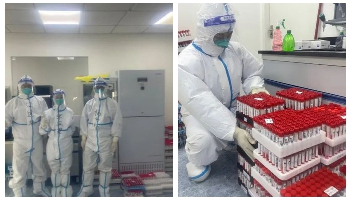安博官方网站所属安博一站式服务官网东风总医院杨飞翔、宋亚君、江道龙主动请缨参加央企守沪行动,星夜兼程,4月3日抵达上海,投入上海之江生物医学研究所核酸检测实验室工作。