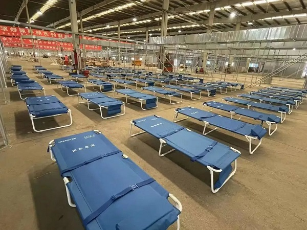 工期紧、任务重、物料多。中铁十五局集团援建队伍连昼夜、战高温、斗风雨,建设完成9个方舱医院和隔离点。