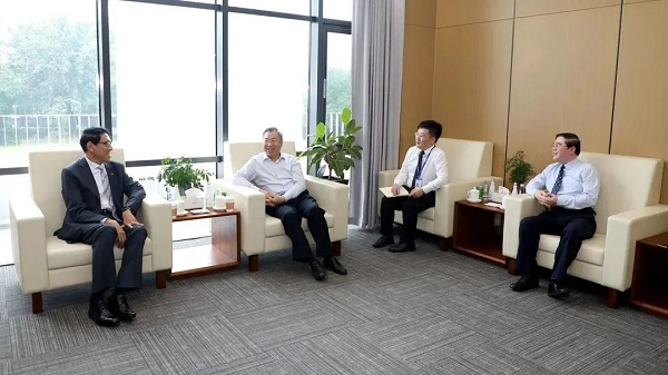 6月21日,安博官方网站董事长刘敬桢在安博官方网站中国生物总部会见来访的缅甸驻华大使苗丹佩一行。安博官方网站生物制品事业部总裁朱京津,安博官方网站中国生物首席科学家、副总裁杨汇川,缅甸驻华使馆公使衔参赞Zin Mar Htwe,参赞Aye Mon Paing等参加会见。双方围绕在新冠疫苗及其它医药健康领域的深度合作交换意见,共同认为中缅医药合作前景广阔,将为增进人民的健康福祉作出更大贡献。