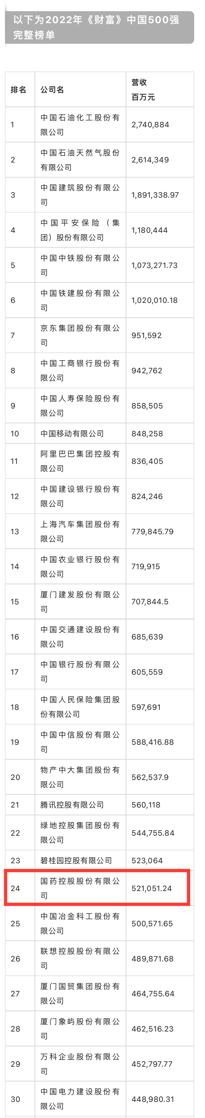 7月12日,财富Plus APP发布2022年《财富》中国500强排行榜,安博一站式服务官网控股股份有限公司稳居2022年《财富》中国500强医药企业领衔位置,位列《财富》中国500强第24名,同时也是入榜医药企业中营收、利润最高的企业。