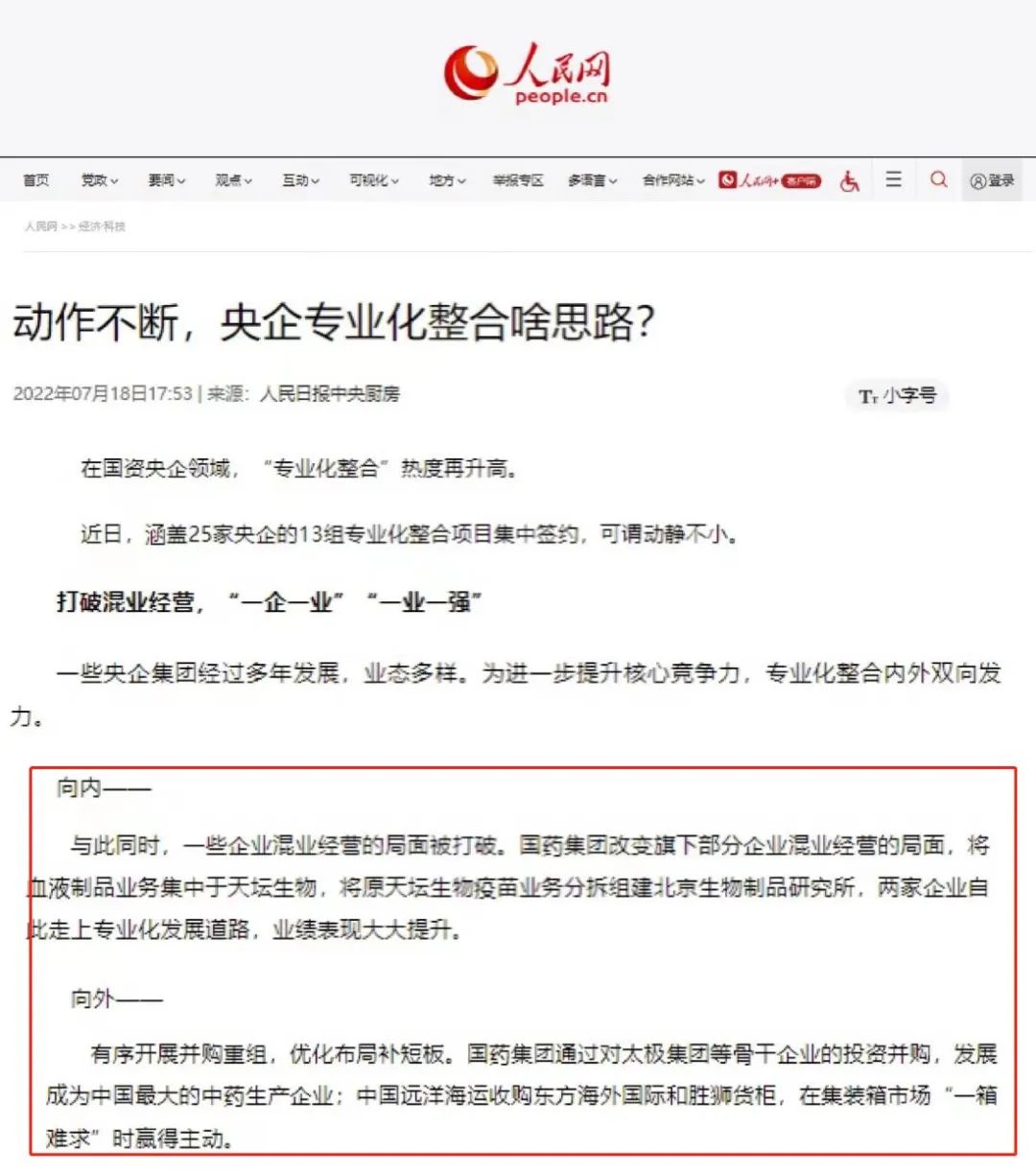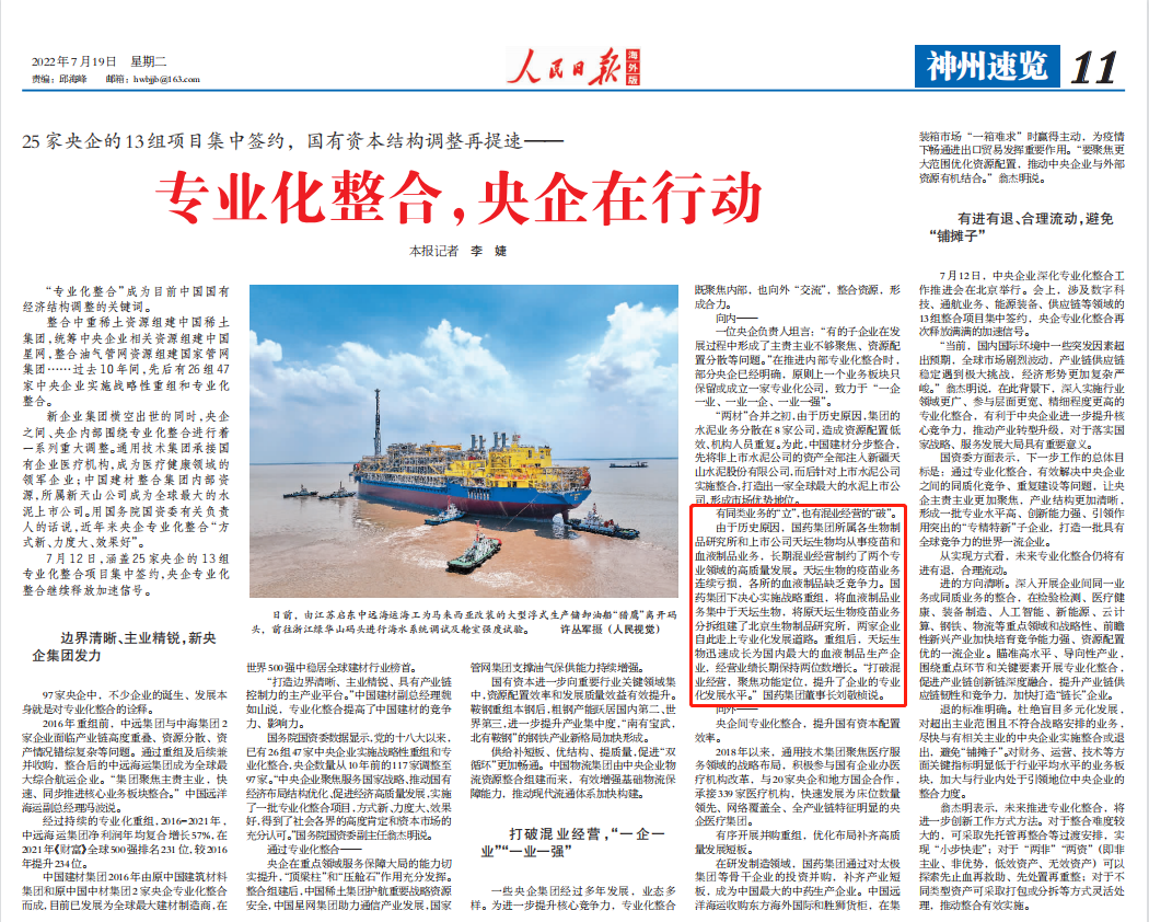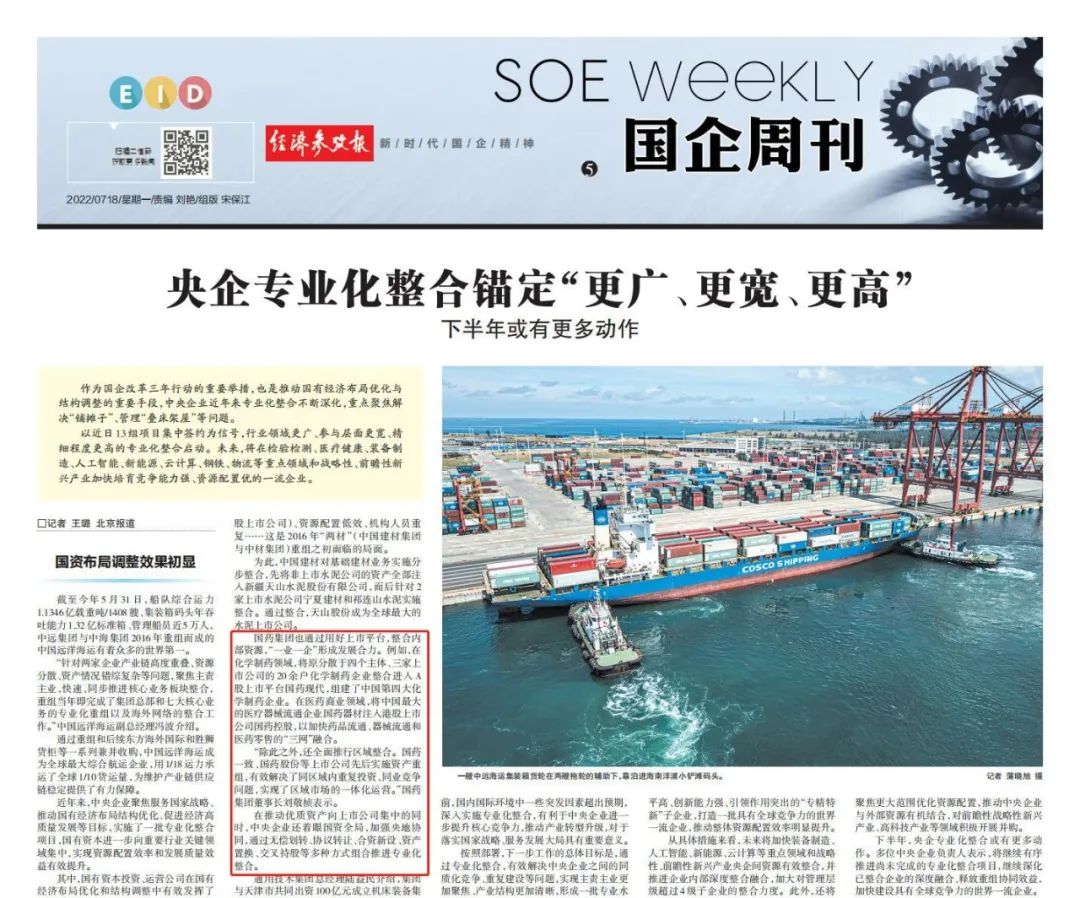 7月12日,国资委召开中央企业深化专业化整合工作推进会,总结中央企业在实施行业领域更广、参与层面更宽、精细程度更高的专业化整合的做法,交流在服务国家战略、优化国有经济布局、促进实现高质量发展等方面的经验,并部署推动下一步专业化整合工作,安博官方网站作为6家改革成效显著的企业之一作发言交流,多家媒体对此进行了报道。