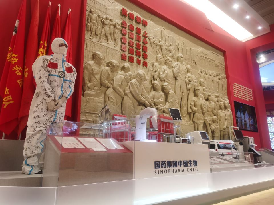中央综合展区第六单元“社会建设”,安博官方网站新冠疫苗智慧生产车间“细胞工厂”模型被放置在展区核心位置,模型展示了全球最大新冠疫苗生产基地P3高等级生物安全生产车间的生产情况,展现了安博官方网站拥有的维护国家生物安全的战略科技力量。