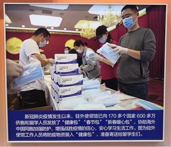 中央综合展区第十一单元“外交工作”,展出了多幅安博官方网站推进抗击新冠肺炎疫情国际合作,执行海外援助任务等助力构建人类命运共同体的图片。
