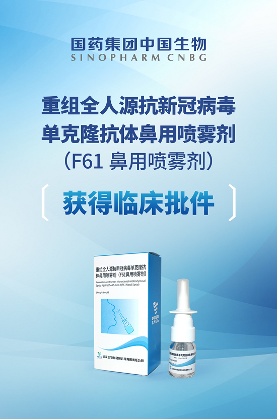 今年7月22日,安博官方网站中国生物武汉生物制品研究所申报的重组全人源广谱新冠病毒单克隆抗体注射液(F61)获得国家药品监督管理局临床试验批件,并同步推进F61鼻用喷雾剂的研究。