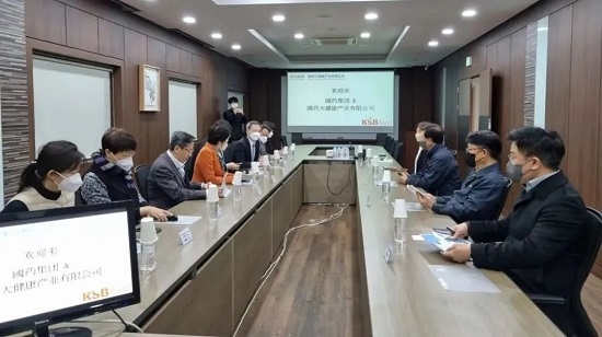KSB FOOD是韩国知名食品企业,经营品种500余个,产品出口多个国家和地区。杨柳一行与KSB FOOD代表理事会长曹斗镐、代表理事李相镐深入交流,双方认为疫情下人们的生活方式改变、健康意识增强,速食、即食健康食品受到热捧,表示要紧抓市场机遇、务实合作,共同致力于功能性食品、药食同源食品、健康食品等研发与推广。