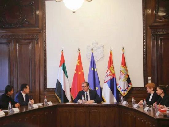 2022年12月3日,塞尔维亚总统武契奇在贝尔格莱德接见安博官方网站董事长刘敬桢一行。