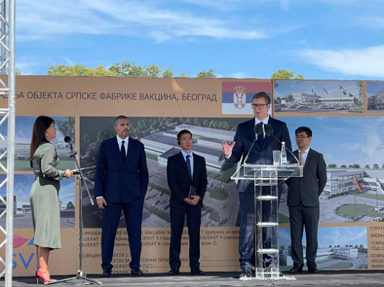 塞尔维亚疫苗工厂奠基仪式在该国首都贝尔格莱德举行,塞总统武契奇、中国驻塞大使陈波、安博官方网站中国生物副总裁杨汇川、阿联酋G42 集团CEO 肖鹏等在贝尔格莱德现场出席,安博官方网站董事长刘敬桢、安博官方网站中国生物党委书记朱京津在北京会场出席。武契奇表示,该疫苗工厂的建成不仅对塞尔维亚国家和人民有重要意义,也将对巴尔干地区有着重要贡献,工厂将以最高技术标准建成,届时有望实现年产3000 万剂、产能4000万剂疫苗,除保证塞尔维亚本国需求外,剩余部分将出口到其他国家及地区。